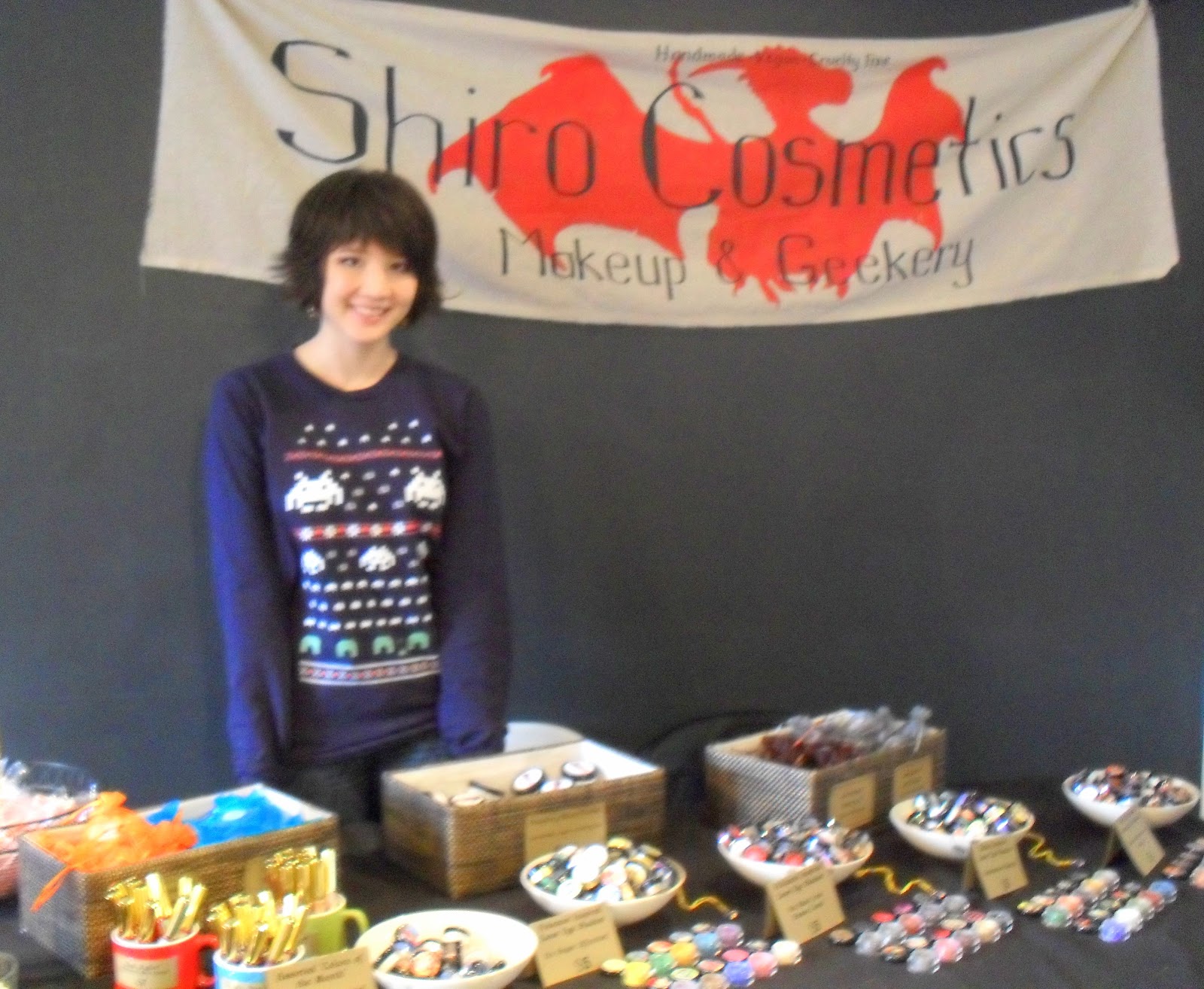 Shiro Cosmetics was there! Isn't the owner adorable? I got to test out the new holiday glosses Red Ryder smelled the best, but I think Leg Lamp was the better shade. I am definitely buying from her soon!